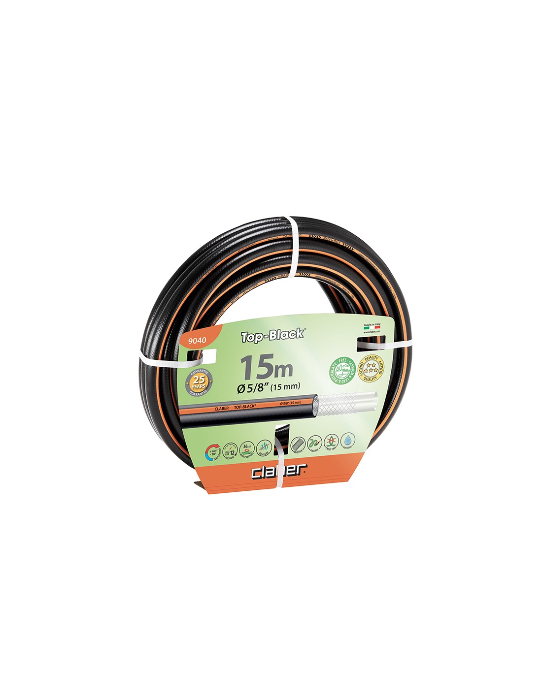 CLABER 9040 Tubo irrigazione antitorsione in gomma atossica Top-Black Ø 5/8” mt 15