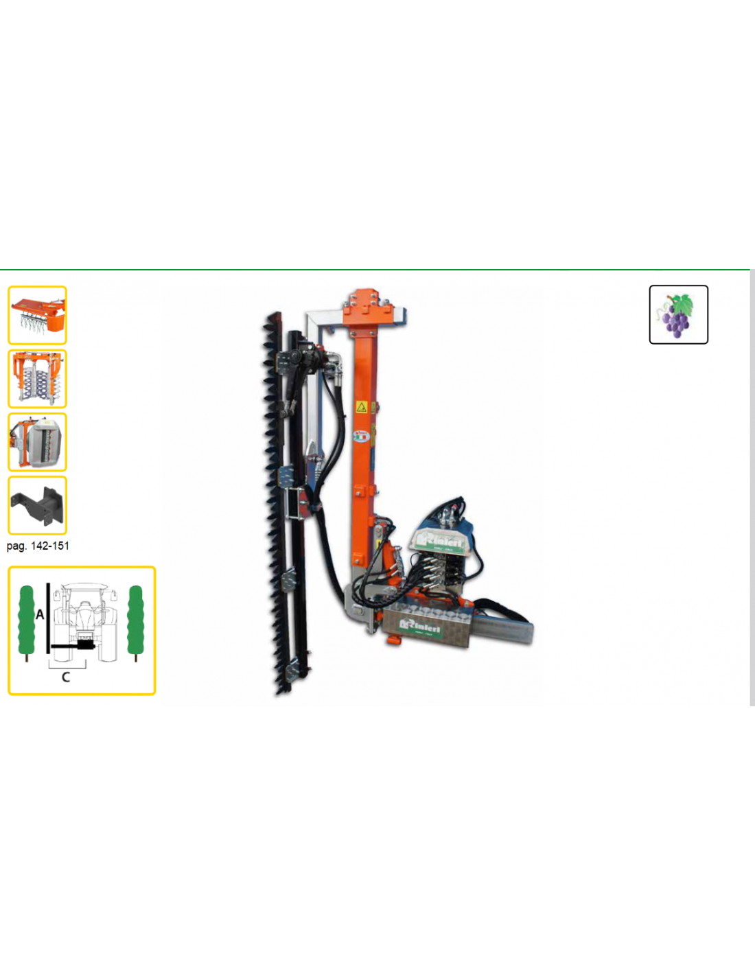 RINIERI - CIMATRICE CRL VISION 1 I CON BARRA BILAMA CON TUBI AL TRATTORE MODELLO CRL V1 A 210