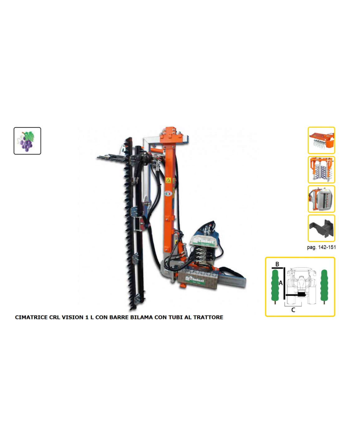 RINIERI - CIMATRICE CRL VISION 1 L CON BARRE BILAMA CON TUBI AL TRATTORE MODELLO CRL V1 A 150+80