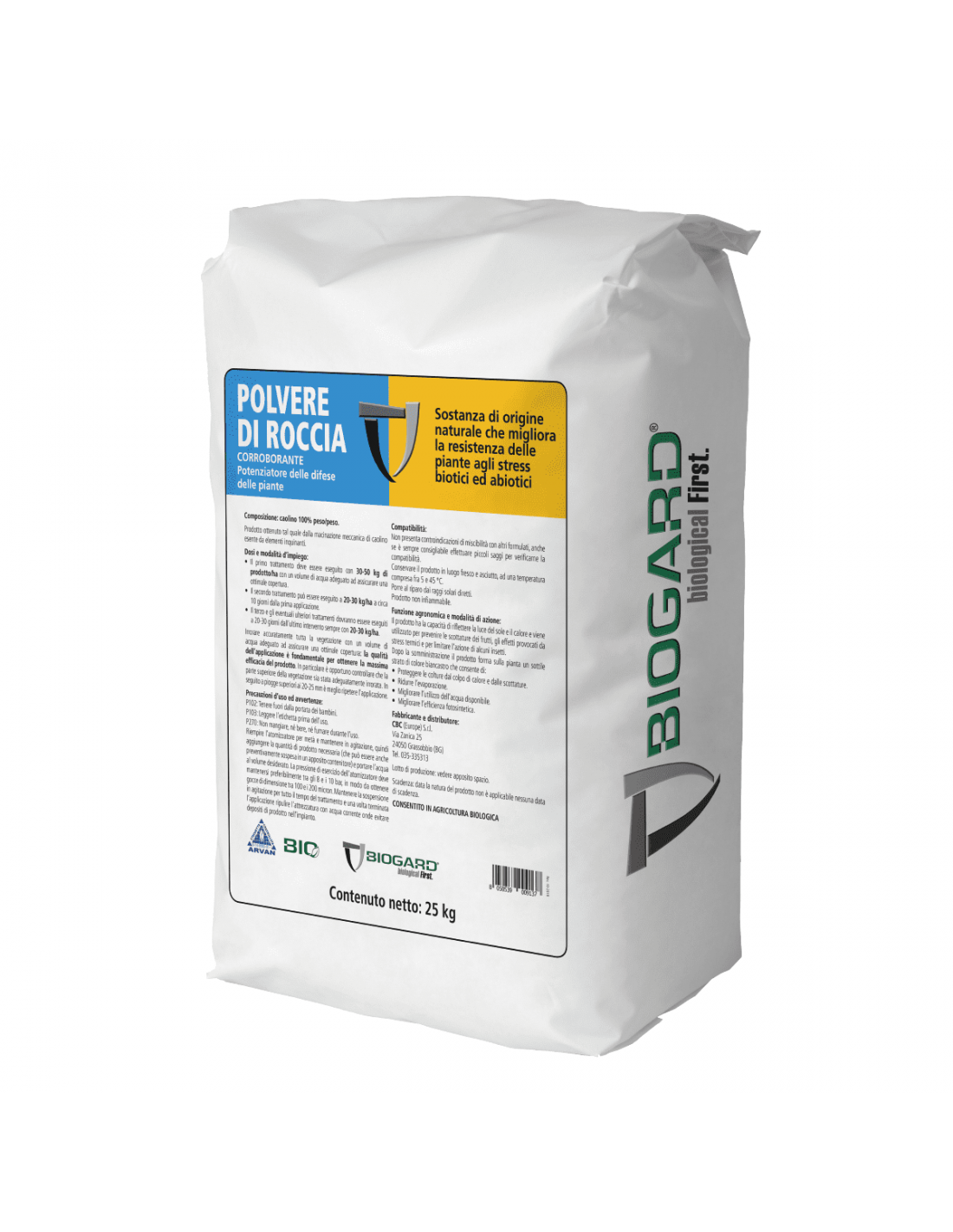 Si tratta di un formulato a base di caolino, che ha subito un processo di macinazione meccanica che permette di eliminare tutte le impurità e ne garantisce una speciale colorazione bianca, fattore chiave per il successo applicativo. Il prodotto contiene il 100% di silicato di alluminio specificatamente formulato per trattamenti fogliari in sospensione acquosa. Il caolino è una sostanza di origine naturale che migliora la resistenza delle piante agli stress biotici e abiotici. Il caolino una volta distribuito sulla vegetazione forma un sottile strato di colore bianco che riflette i raggi solari e svolge un’azione fisica nei confronti di diversi insetti nocivi, che così faticano ad individuare la coltura. Inoltre permette di limitare gli stress termici e le scottature.