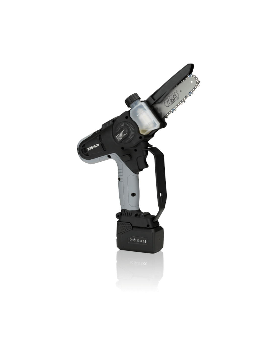 KVS5500 è il potatore a catena con catena da 1/4″, barra da 5″, doppio interruttore di sicurezza e impugnatura ergonomica di VOLPI ORIGINALE. Il modello KVS5500 è dotato di motore BRUSHLESS con una potenza nominale di 650W, e tensione nominale 14,4 DC. Il serbatoio dell'olio è integrato e la lubrificazione avviene attraverso pompa elettronica automatica. L'equipaggiamento si compone di: 2 batterie al litio ricaricabili da 14,4 V 4,0 Ah; caricabatteria a tre vie, kit riparazioni, copri barra e pratica valigetta.