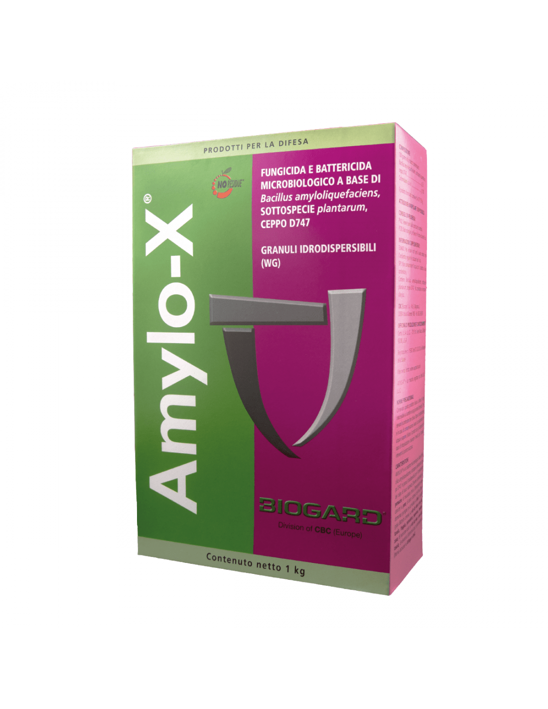Amylo-X è un formulato in granuli idrodispersibili (WG) ed è registrato in Italia dal 2012; recentemente ne è stata ampliata l’etichetta, che ora comprende nuove colture e importanti avversità. D747 è un ceppo di B. amyloliquefaciens appositamente selezionato per la sua azione antimicrobica e la sua capacità di contrasto verso diversi patogeni delle piante. Amylo-X contiene le spore di B. amyloliquefaciens ceppo D747 che, una volta miscelate in acqua, iniziano i processi germinativi che si concludono sulla superficie della coltura da proteggere. Si producono così cellule vegetative che avviano una competizione con i patogeni per le fonti nutritive e lo spazio vitale; vengono inoltre prodotti lipopeptidi in grado di inibire la crescita e lo sviluppo dei patogeni. Il ceppo D747 di B. amyloliquefaciens è infine in grado di attivare meccanismi di induzione di resistenza nella pianta oggetto del trattamento. Amylo-X è un fungicida e battericida ad ampio spettro d’azione che può essere usato da solo o in strategia con fungicidi convenzionali (compresi i prodotti rameici).