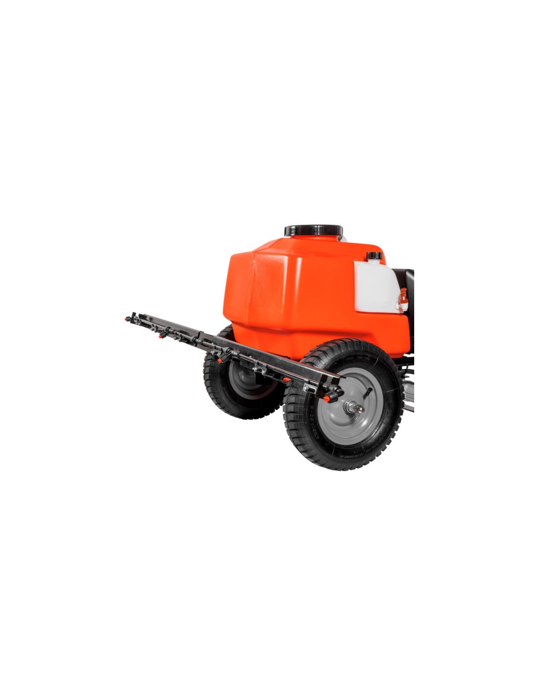 - con il gancio traino può essere trainata con piccoli trattori da giardinaggio, in modo da poter coprire anche aree molto vaste, senza fatica. Il gancio traio può essere facilmente montato al posto dei manici per la spinta manuale;