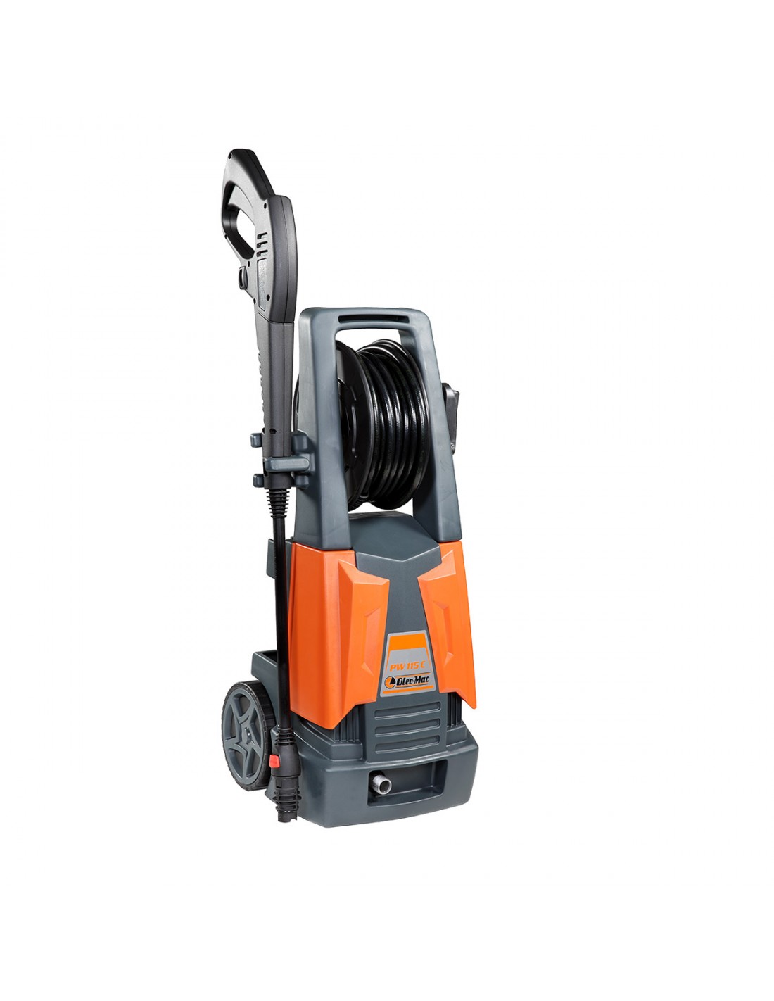 - pistola con protezione, lancia con innesto ugello, ugello regolabile, ugello rotante, ugello detergente, avvolgitubo, 8 m di tubo termoplastico, serbatoio detergente integrato, idrospazzola fissa