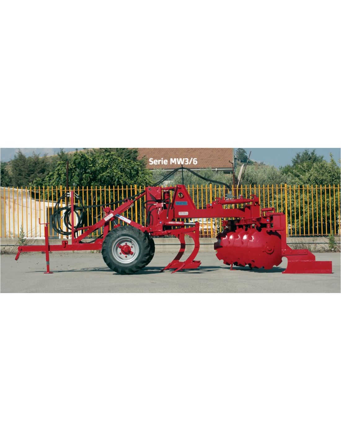 Tre corpi dissodatori regolabili fino ad una profondità di 40 cm, n. 2 serie di esplosori di cui una montata ed una corredo, gli esplosori piccoli si utilizzano con la terra asciutta, i grandi con la terra umida. N° 6 dischi di ⌀ 660 montati in una sezione reversibile, la profondità massima di sovescio è di 25 cm.