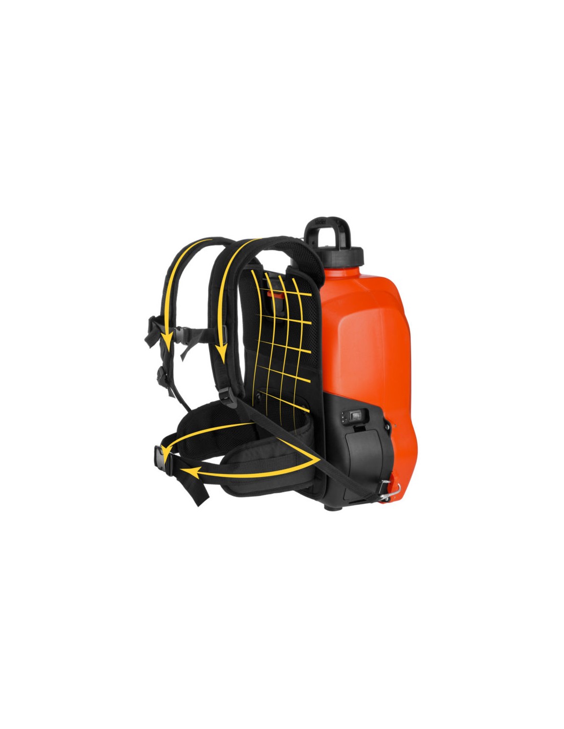 La pompa a zaino elettrica Ergo è ancora più comoda e performante: è dotata di un innovativo bastino ergonomico, ispirato agli zaini da escursionismo, con spallacci imbottiti e cinghie regolabili per la massima stabilità del carico su ogni tipo di corporatura e una miglior distribuzione del peso.