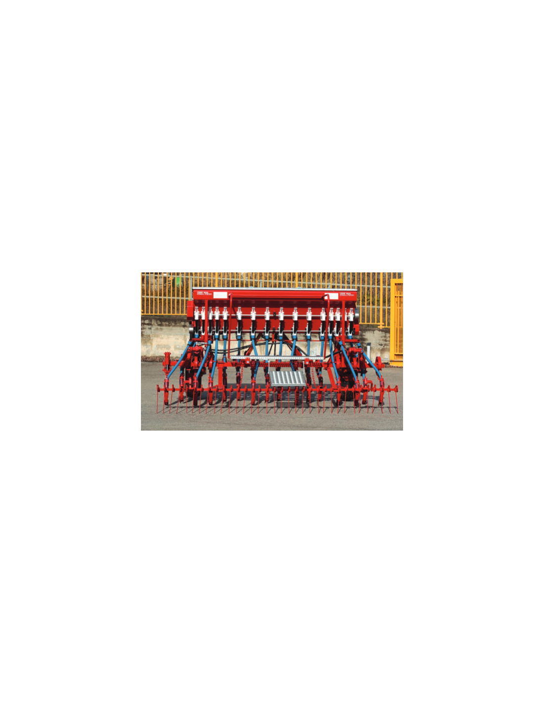 La seminatrice nasce con 12 assolcatori FLEX 45x12, i diffusori della sementa consentono una larghezza dei filari di circa 8-10 cm, l'interasse degli assolcatori è di cm 20,8. La macchina base è una seminatrice portata da mt. 2,50 con 12 assolcatori per sola sementa, la larghezza esterna delle ruote è di mt 2,55. La seminatrice può essere fornita con un apposito Kit per renderla combinata e quindi adatta per sementa e concime. Alla macchina base è anche possibile applicare un kit che comprende i semitelai pieghevoli e tutti i componenti necessari per completare la stessa con 16 assolcatori ed avere una larghezza di lavoro di mt 3,33. Inoltre la stessa seminatrice portata può essere facilmente trasformata in trainata; il kit di traino comprende la barra, i martinetti ed accessori vari.