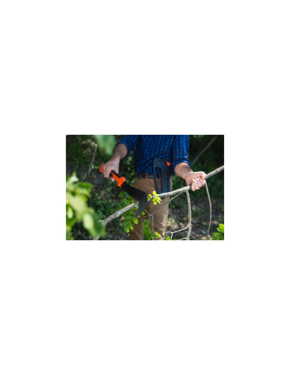 È dotata di una lama da 27 cm in acciaio al carbonio di altissima qualità e manico ergonomico super-leggero, con inserti anti scivolo e interno vuoto per ridurre le vibrazioni causate dall’impatto con il legno. La curvatura alle due estremità del manico è progettata per la sicurezza, evita infatti che l'attrezzo scivoli dalle mani o che la mano dell'operatore venga a contatto con la lama. Completa di pratica custodia con affilalame integrato, per affilare il filo della lama anche durante il lavoro e passante per cintura integrato, per un trasporto sicuro e comodo.