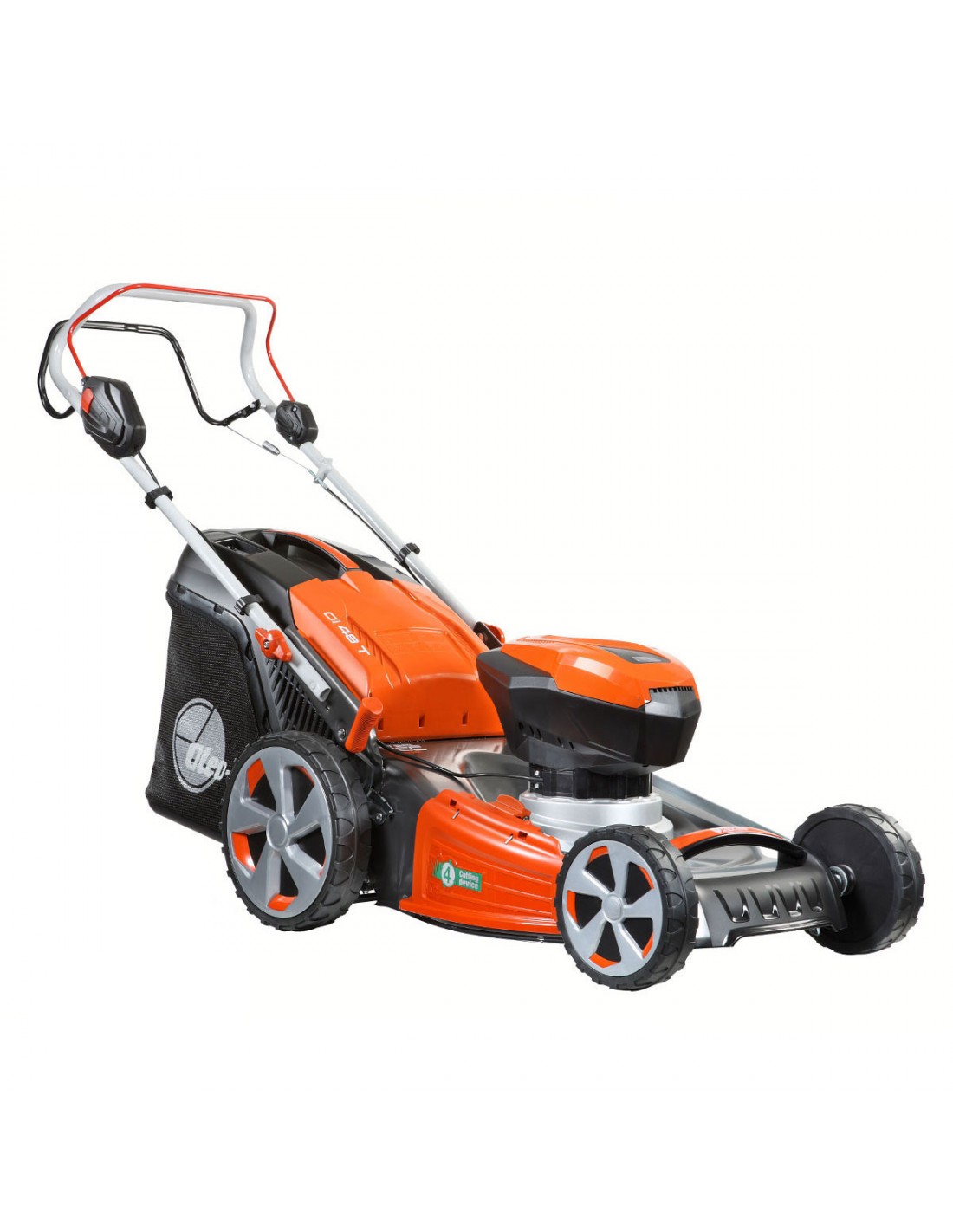 Il tagliaerba a batteria Gi 48 T ha un piatto di taglio da 46 cm per un manto erboso perfetto fino all’ultimo m² . Tagliare il prato sarà una vera e propria passeggiata, è il tagliaerba semovente facile da usare e che non ha bisogno di manutenzione. Inoltre, è dotato del sistema di taglio che ti sorprende, passi dalla raccolta (fino a 70 L) al taglio mulching e allo scarico laterale.